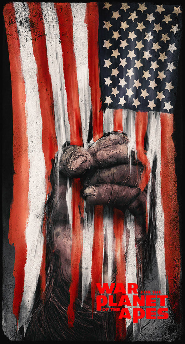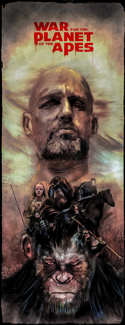 Officially licensed posters for the War For The Planet of The Apes , commissioned by 20th Century Fox through the Poster Posse
